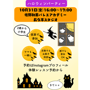 どなたでも参加できるハロウィンパーティーを開催します🎵教室の雰囲気をのぞいてみたい人は是非遊びに来てみて下さい。ご予約が必要です。👇👇👇ご予約はこちらから👇👇👇問い合わせ | 佐野和美バレエアカデミー